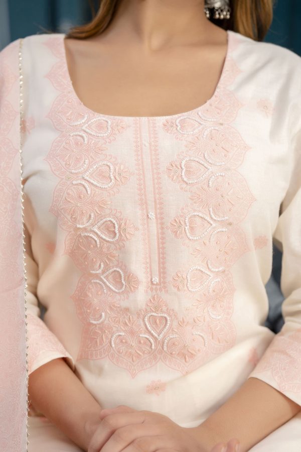A high quality linen pure Cotton piece with 3D printing adorned with hand bead work!! Pure luxury…