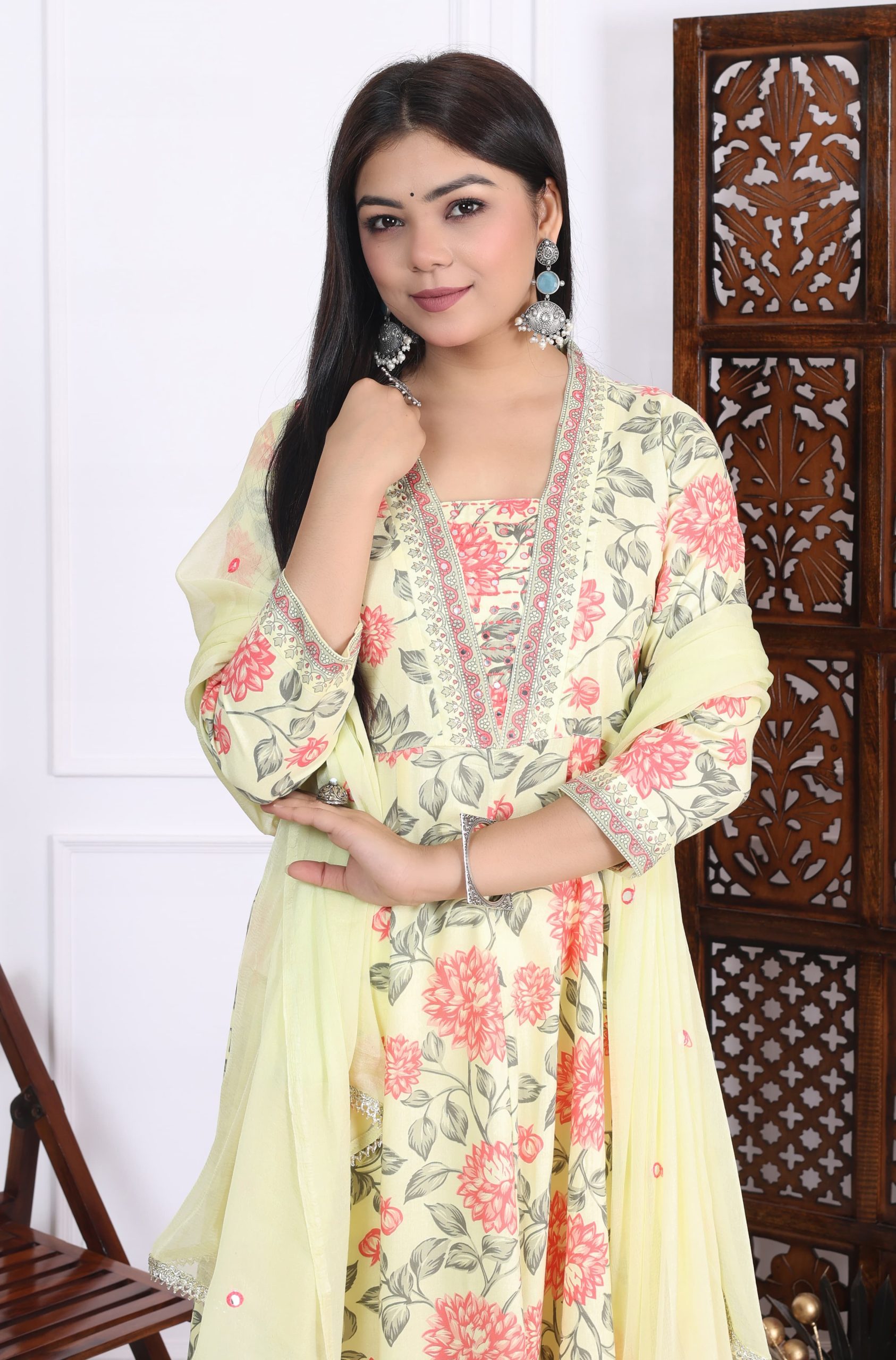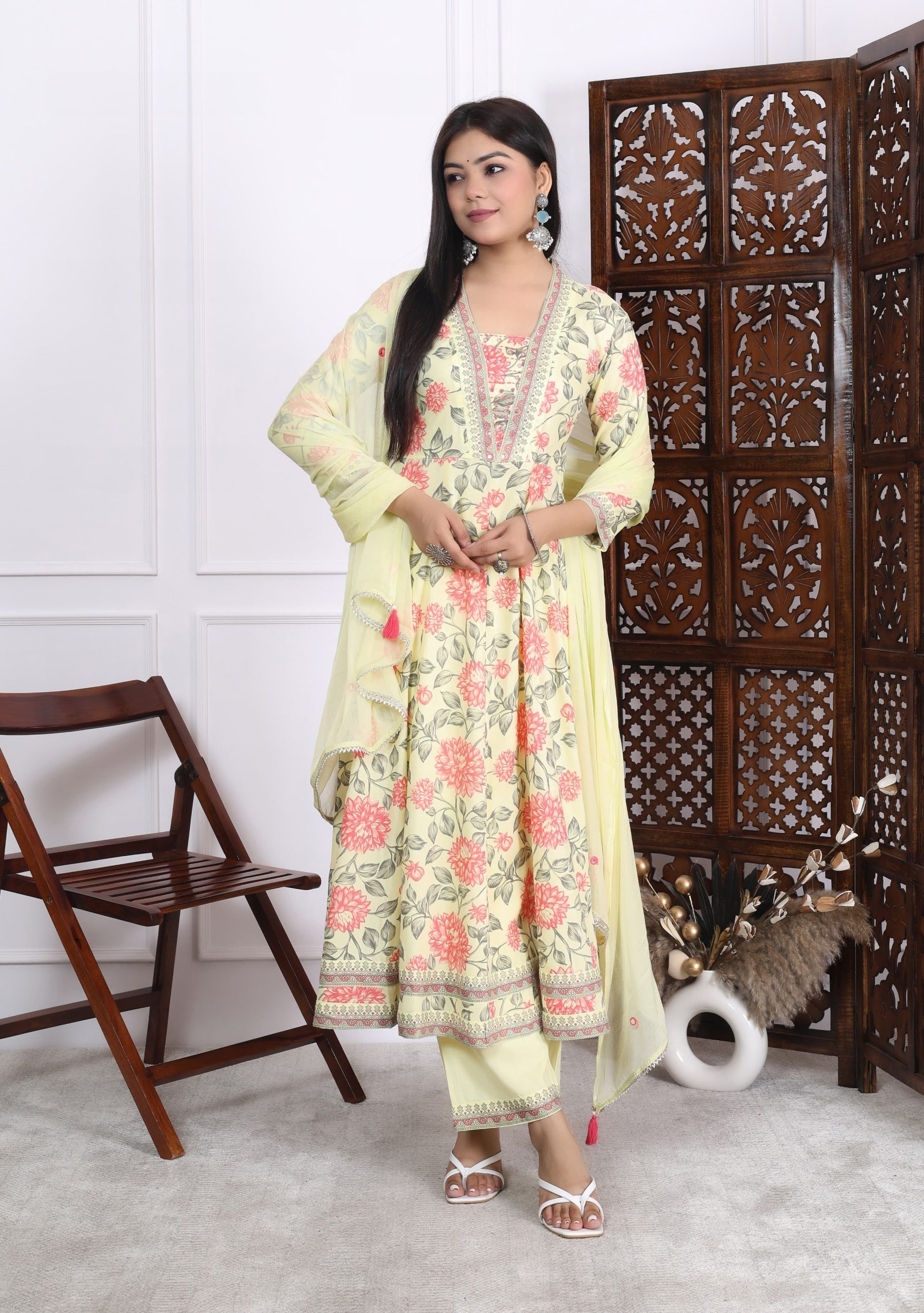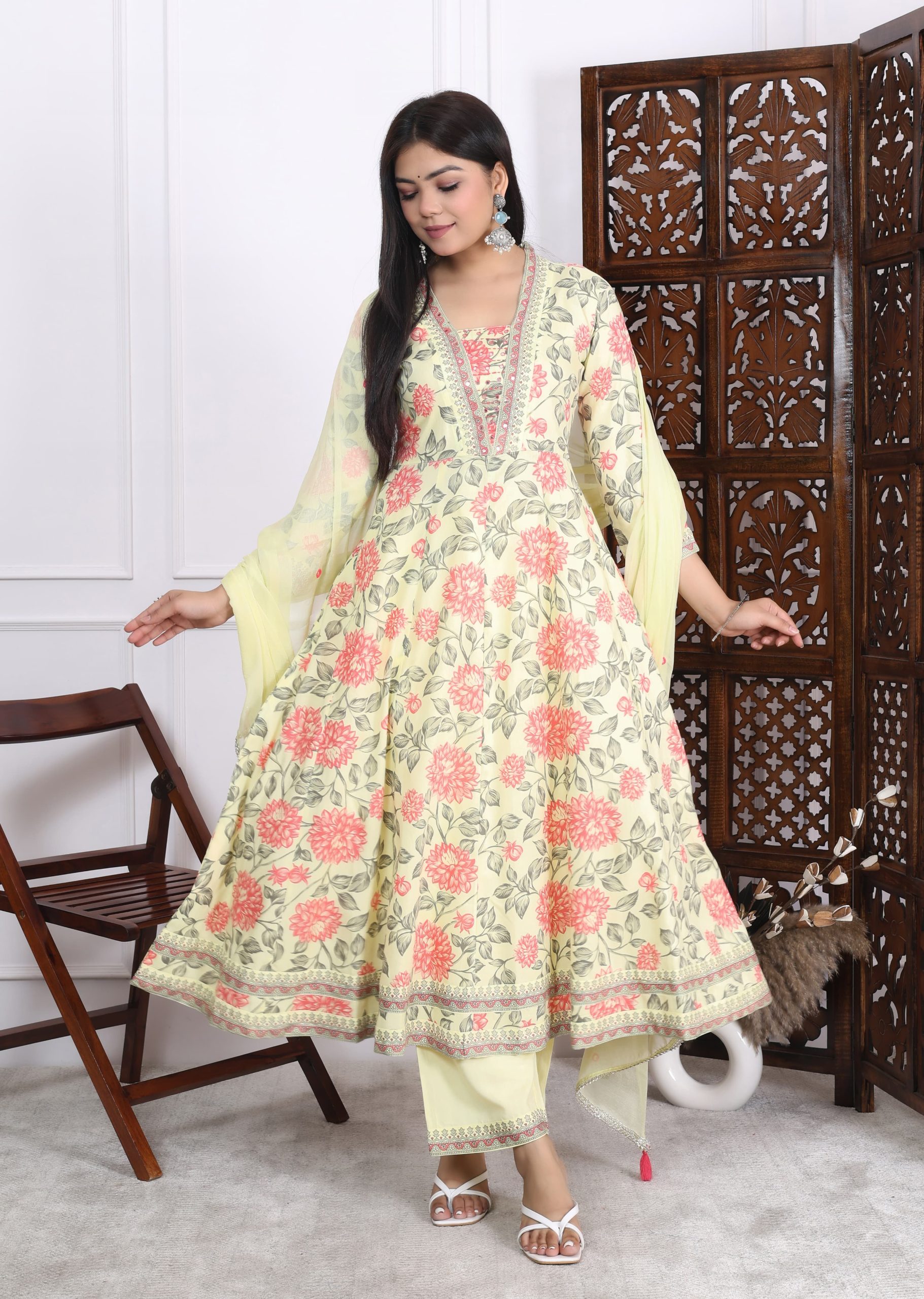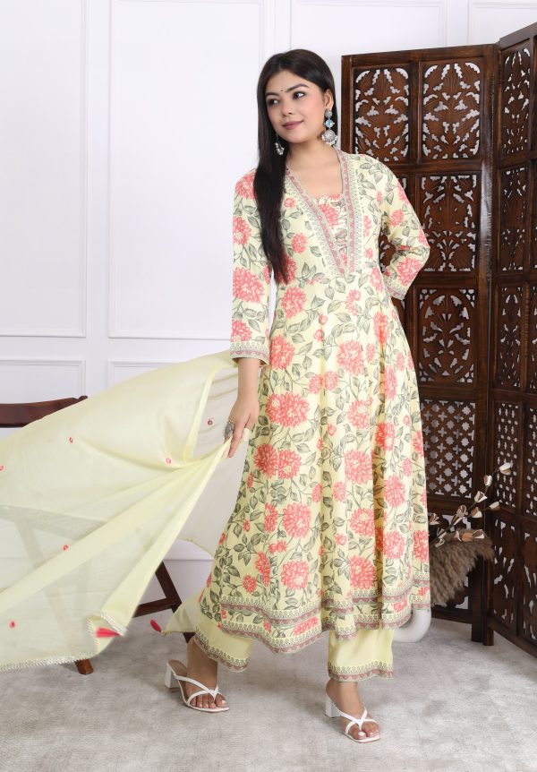 Embrace effortless charm with this floral anarkali piece in pure organic cotton. Cool and non-transparent fabric!