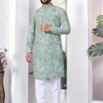 Cool and Comfy Embroidered Kurta Pajama for Men in Sage Green