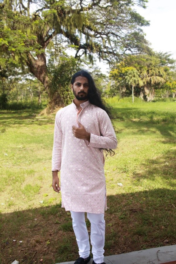 Luxurious Embroidered Kurta Pajama for Men in Nobel Pink(Comes with White Pants/Pajama)