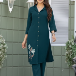 Teal Blue Straight Kurta Set With Shawl