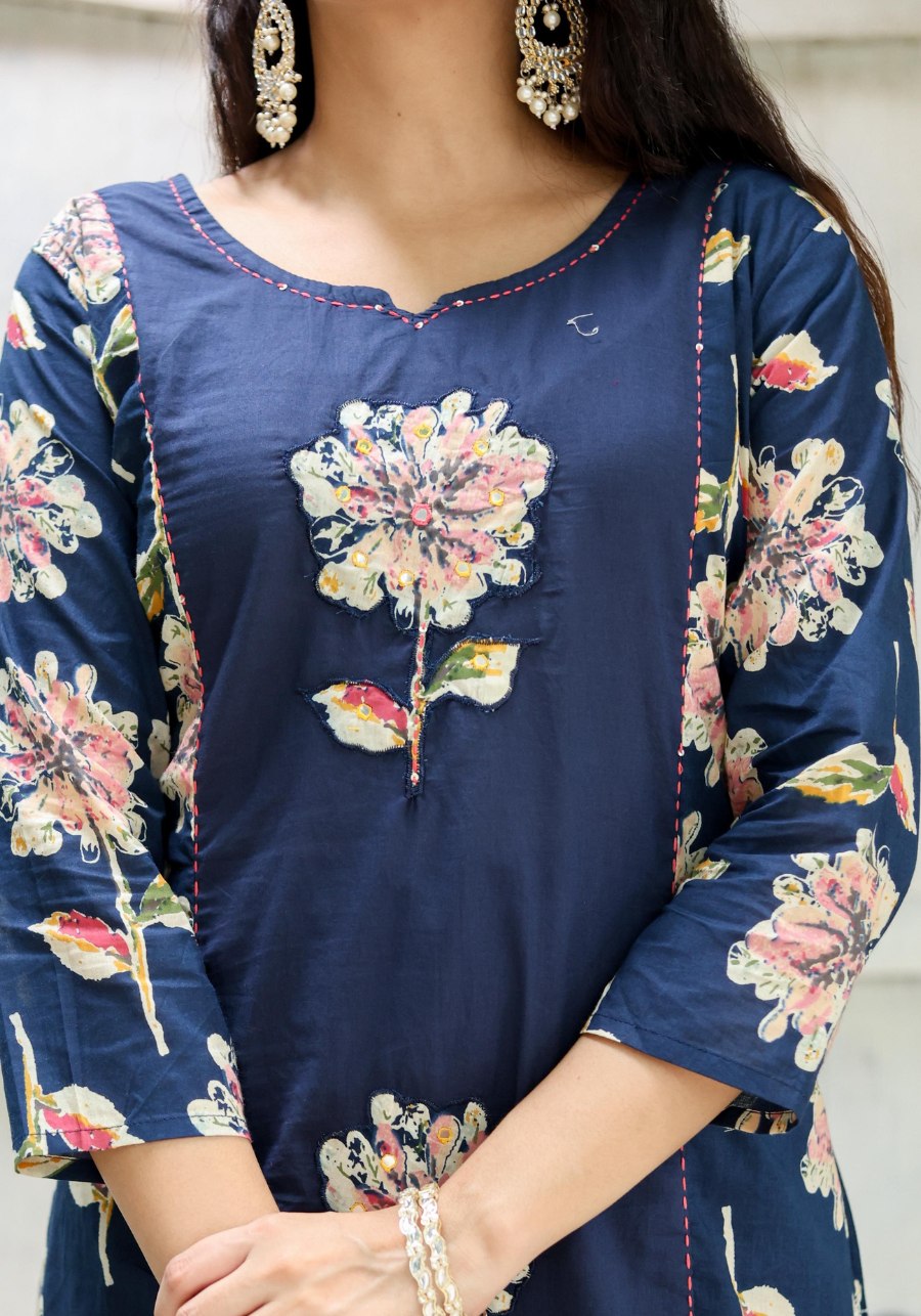 Navy Midnight Floral Appliqué Ensemble