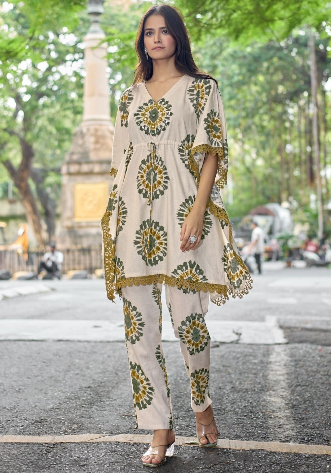 Premium Cotton Flex Print Kurta Set With Artisanal Handwork