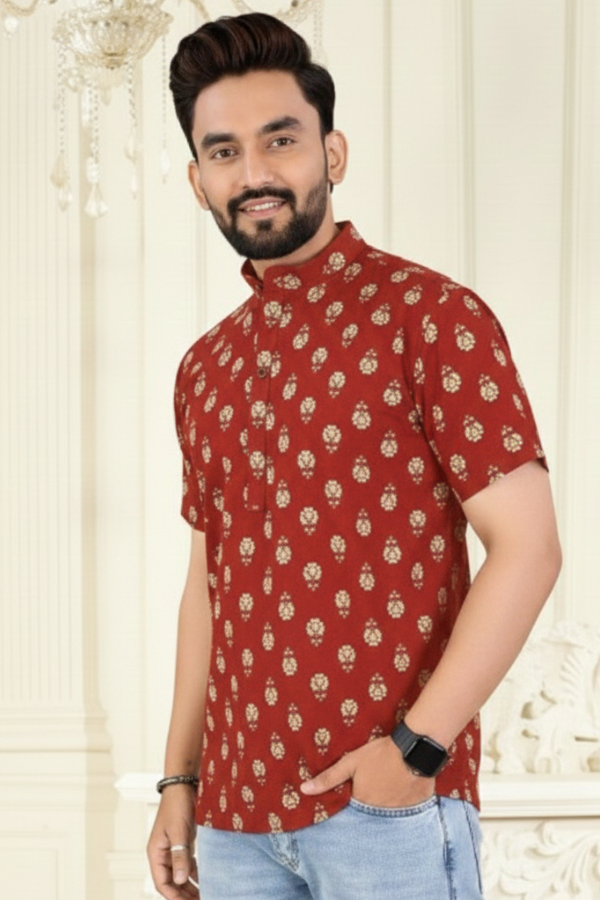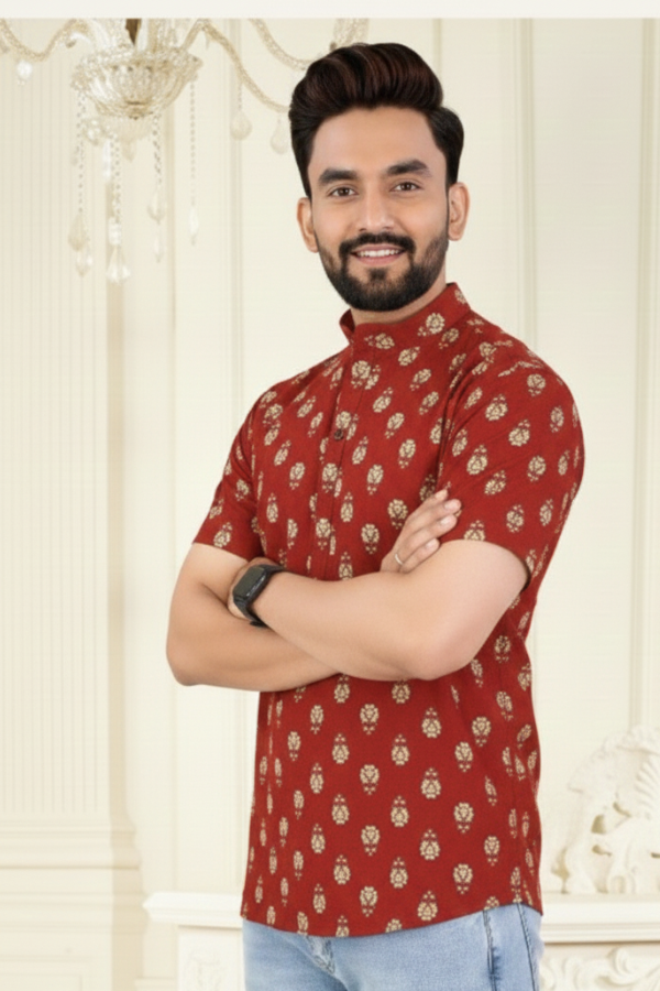 This short-length kurta style shirt is crafted from fine pure cotton for all-day comfort and breathability. Designed to suit both Indian office wear and western gatherings, it offers a smart blend of traditional style and modern appeal.