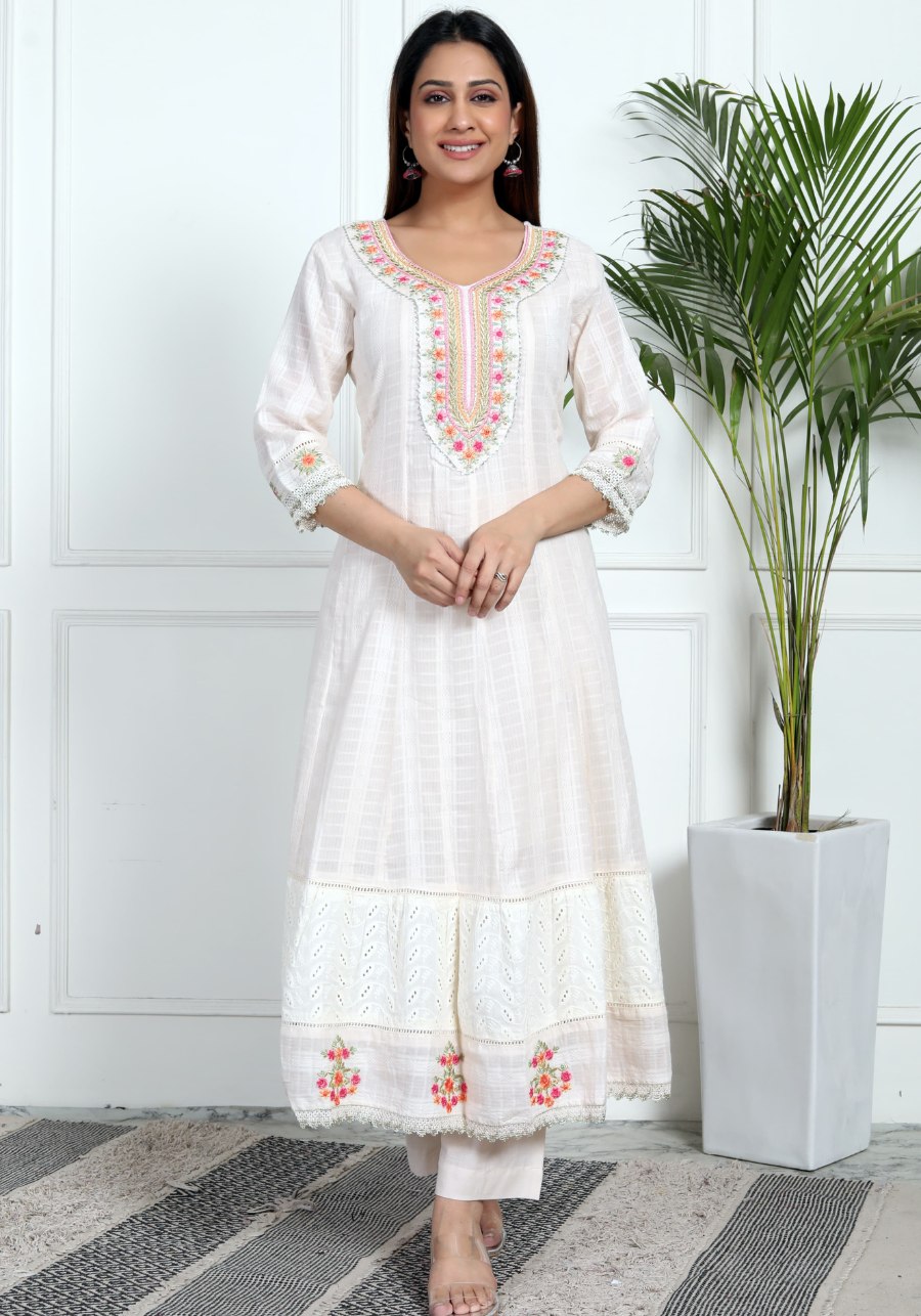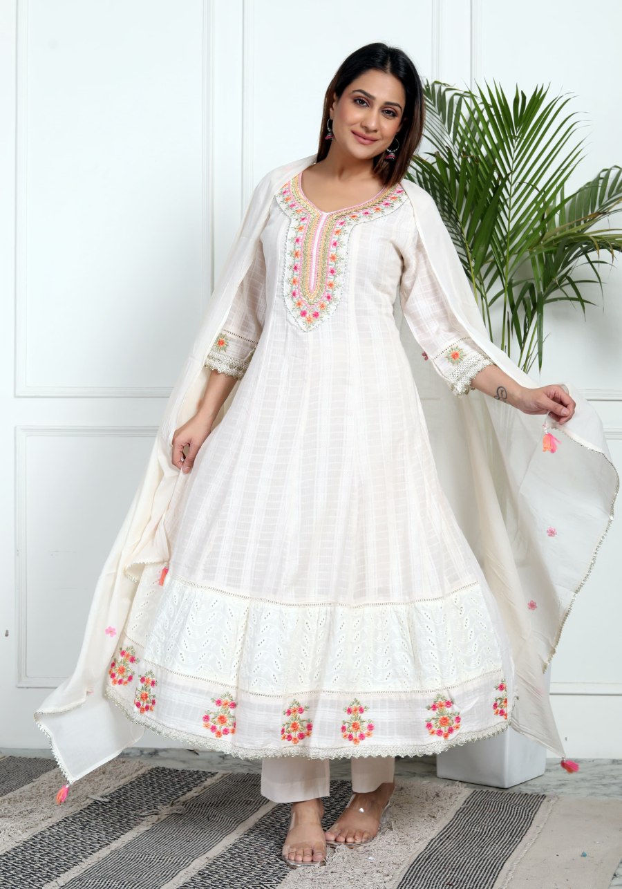 Premium Kota Doriya Anarkali With Artisan Chikankari Work