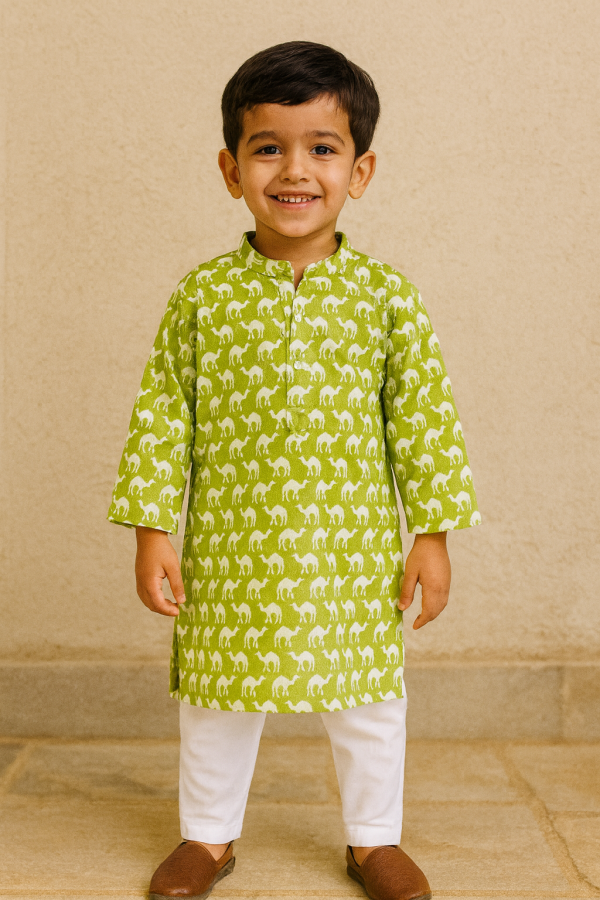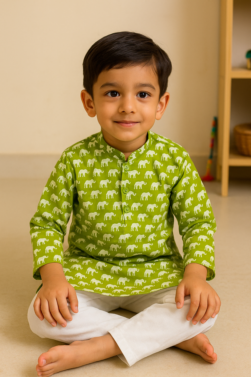 Discover comfort and traditional charm with our pure cotton kurta paired with pyjamas. Crafted from high-quality cotton fabric, the kurta features a classic design with intricate detailing, ensuring both style and comfort. The coordinating pyjamas offer a relaxed fit, enhancing the ensemble’s versatility for casual outings or festive occasions. Kids wear by Sanaayu.