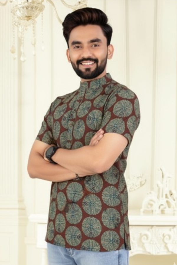 Unique Rust Colour Pure Cotton Hand Block Printed Shirt