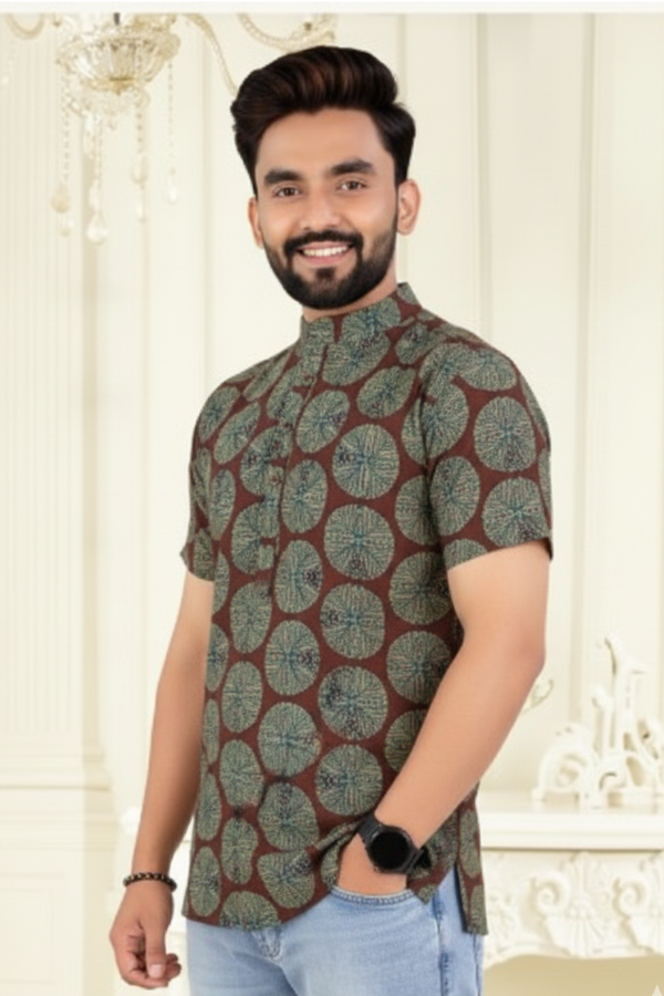 This short-length kurta style shirt is crafted from fine pure cotton for all-day comfort and breathability. Designed to suit both Indian office wear and western gatherings, it offers a smart blend of traditional style and modern appeal.