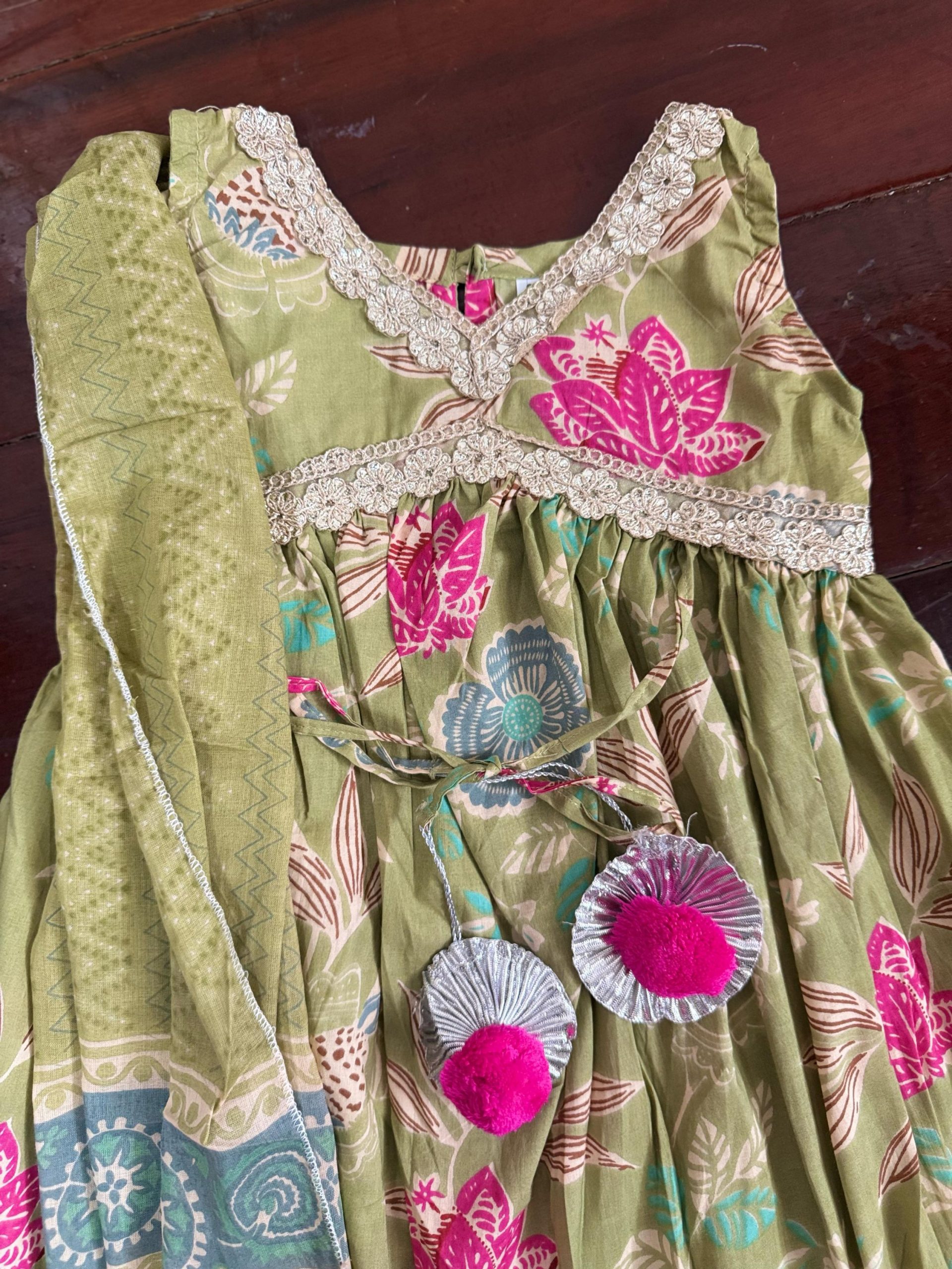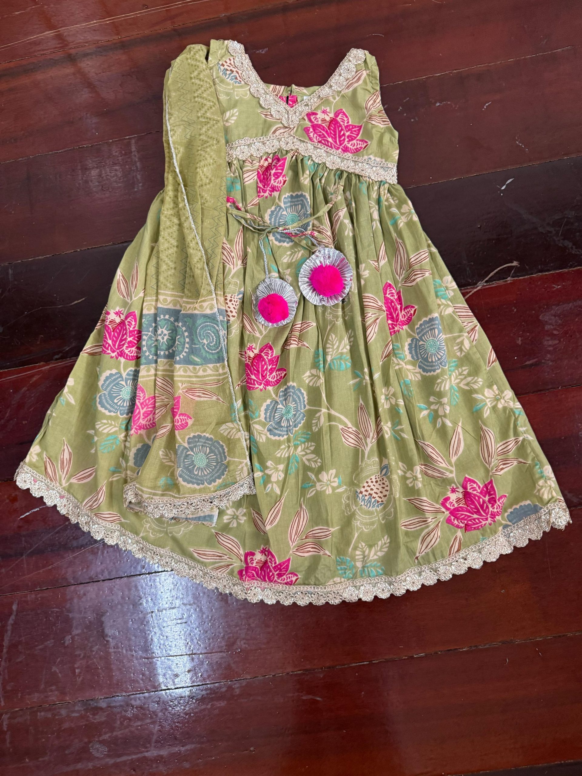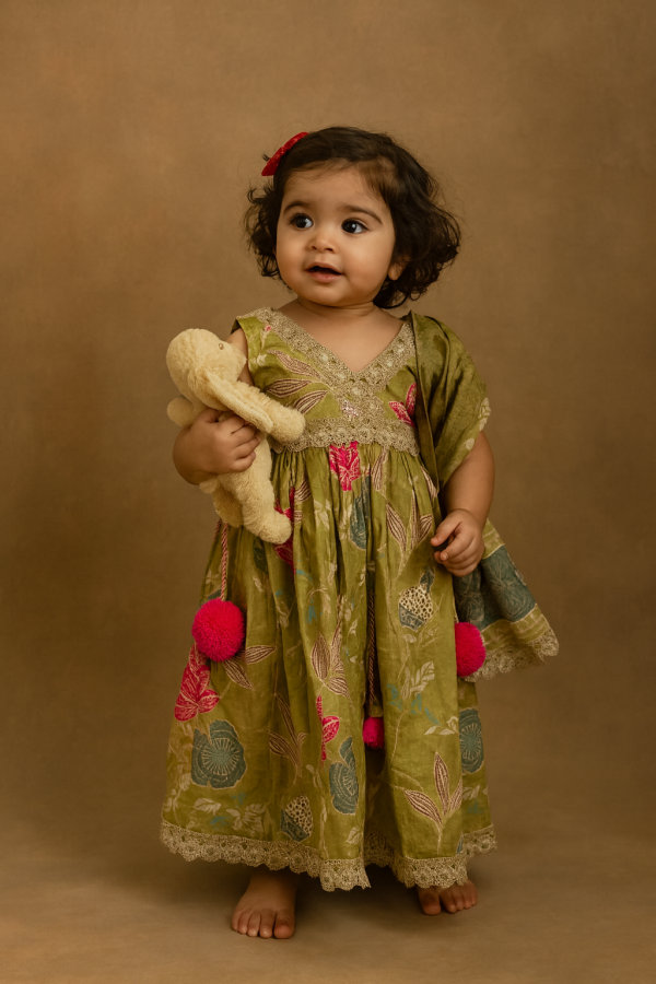 Discover effortless elegance with our Pure Cotton Ethnic Gown, featuring a beautifully crafted floor length flairy kurta adorned with subtle embroidery and a matching shawl, adding a touch of sophistication to your loved ones’ look. Made from 100% breathable cotton, it ensures comfort and versatility, making it ideal for both festive occasions and everyday wear.