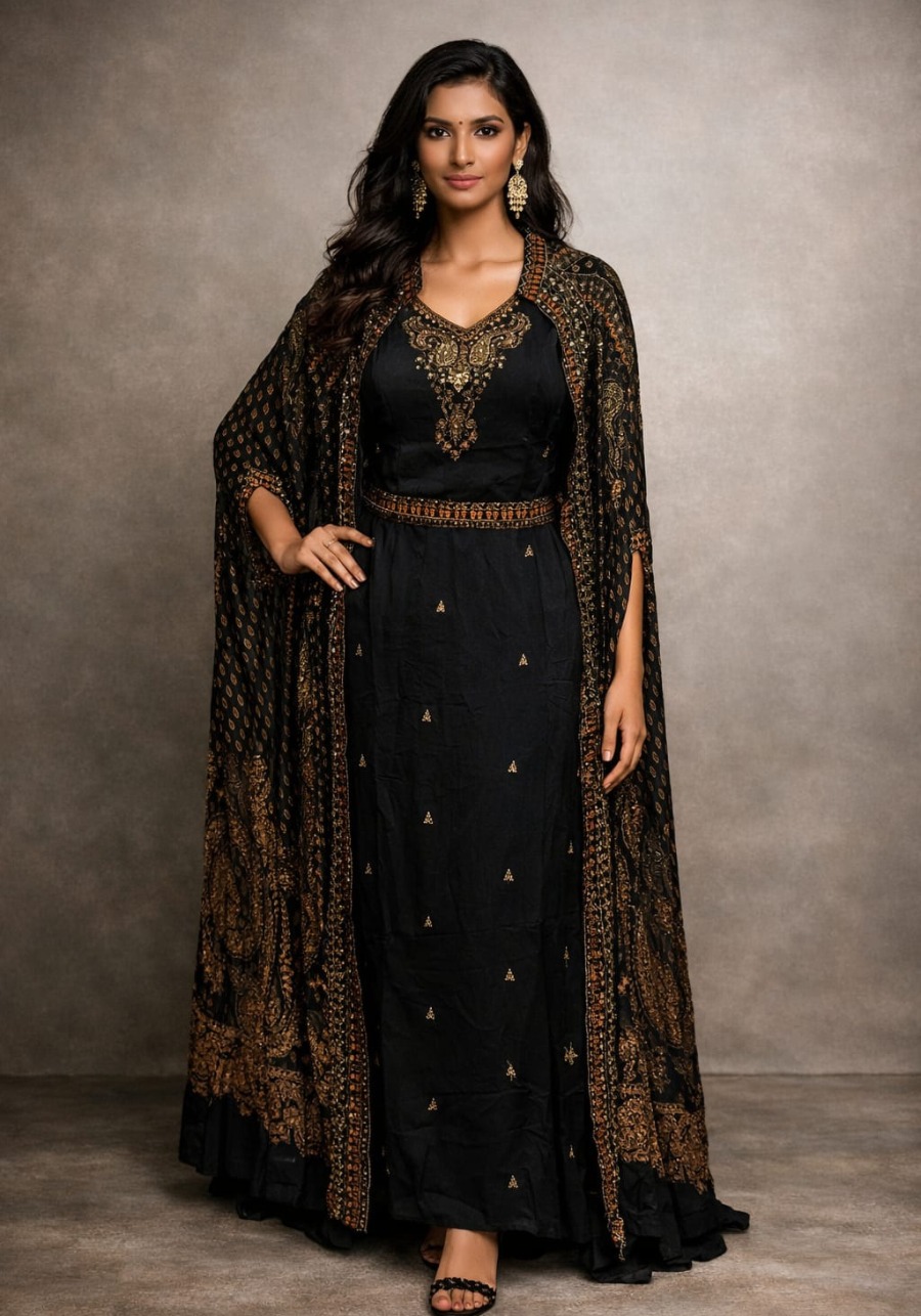 Pure Crepe With Flowing Shrug