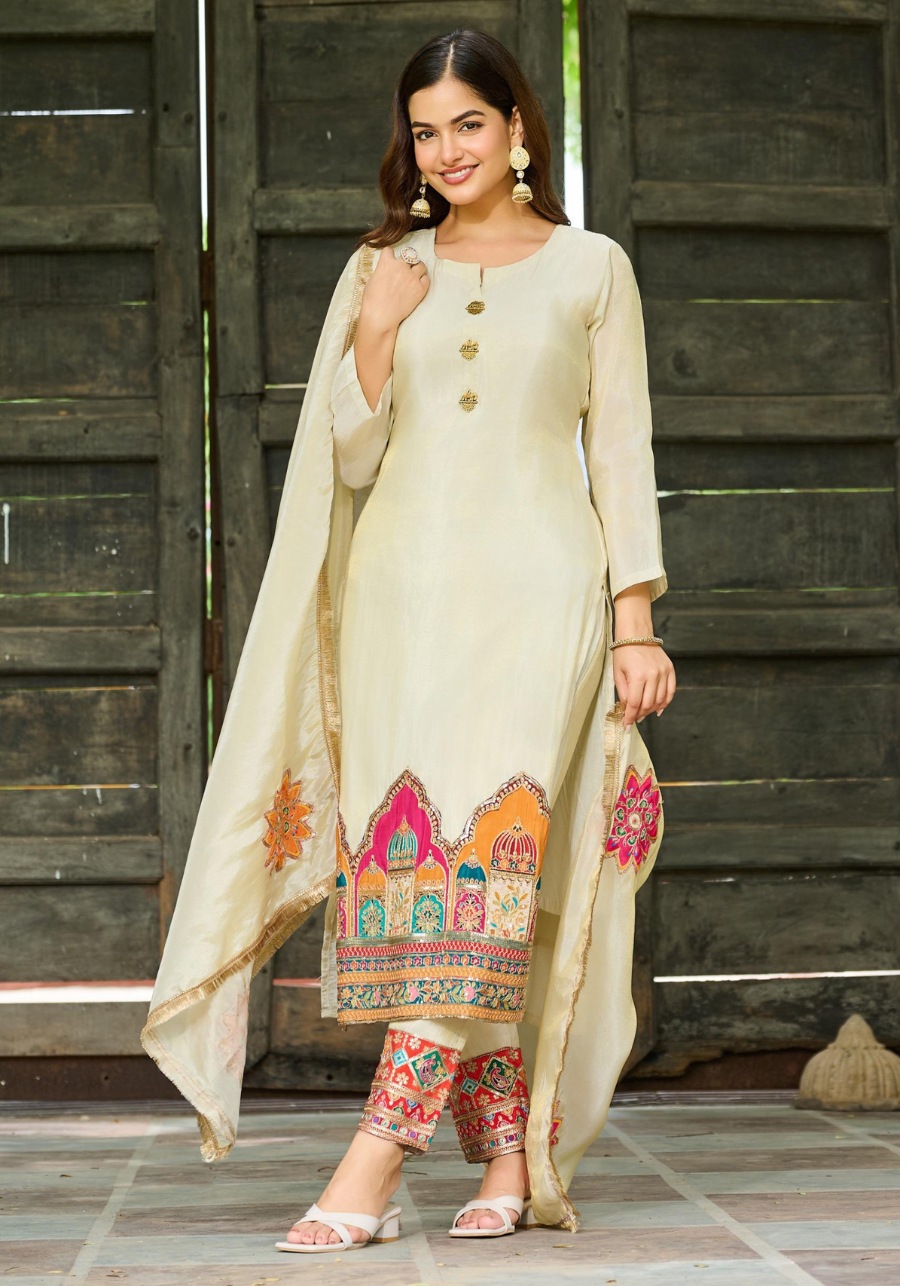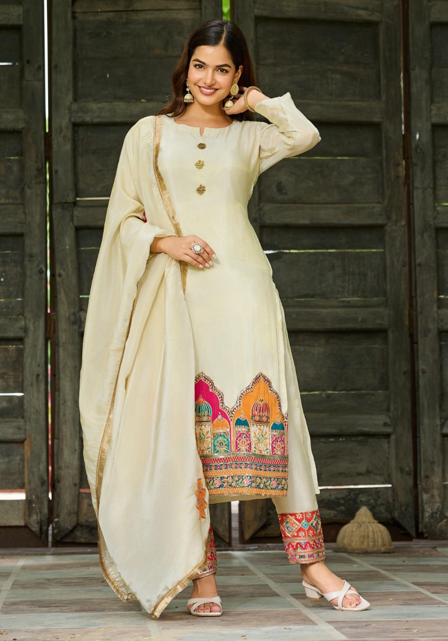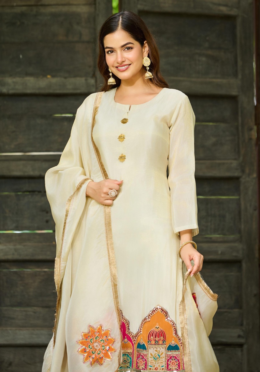 The look is completed with pure shimmer tissue bottoms and a matching tissue dupatta, both featuring detailed embroidery. To ensure you feel as good as you look, the set comes with a soft cotton inner for breathable comfort throughout the day.