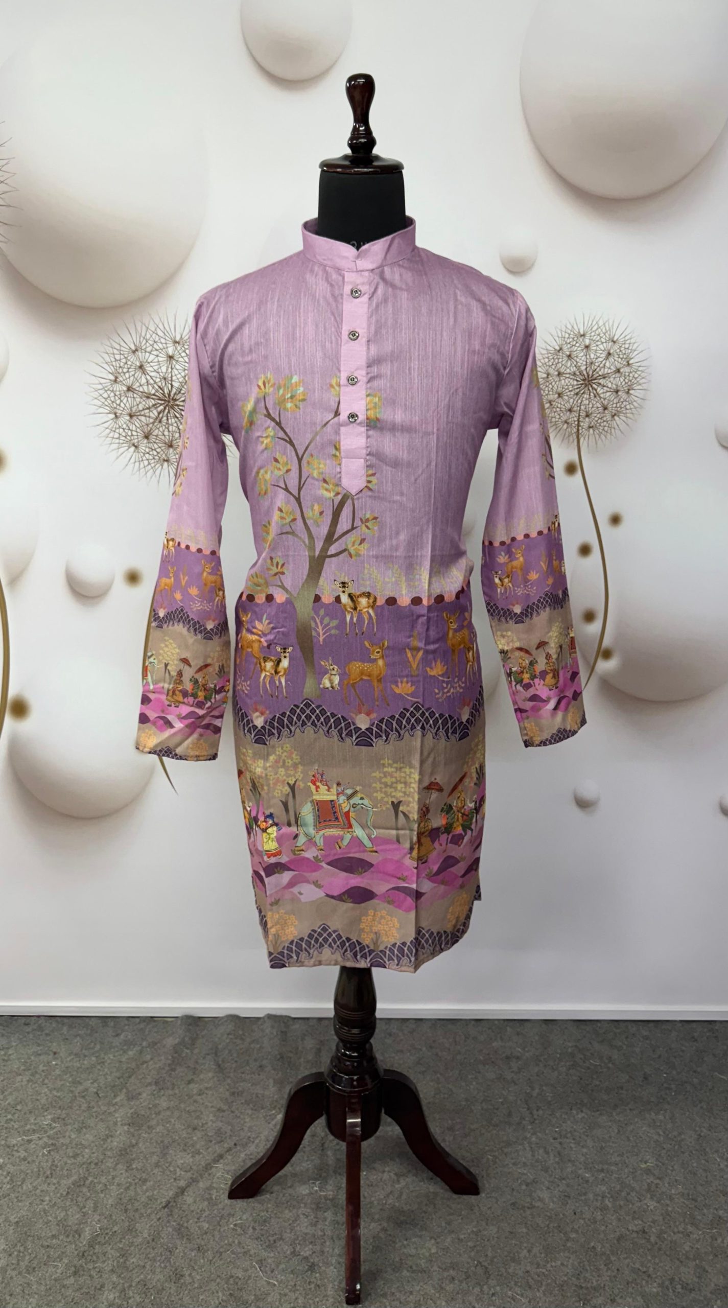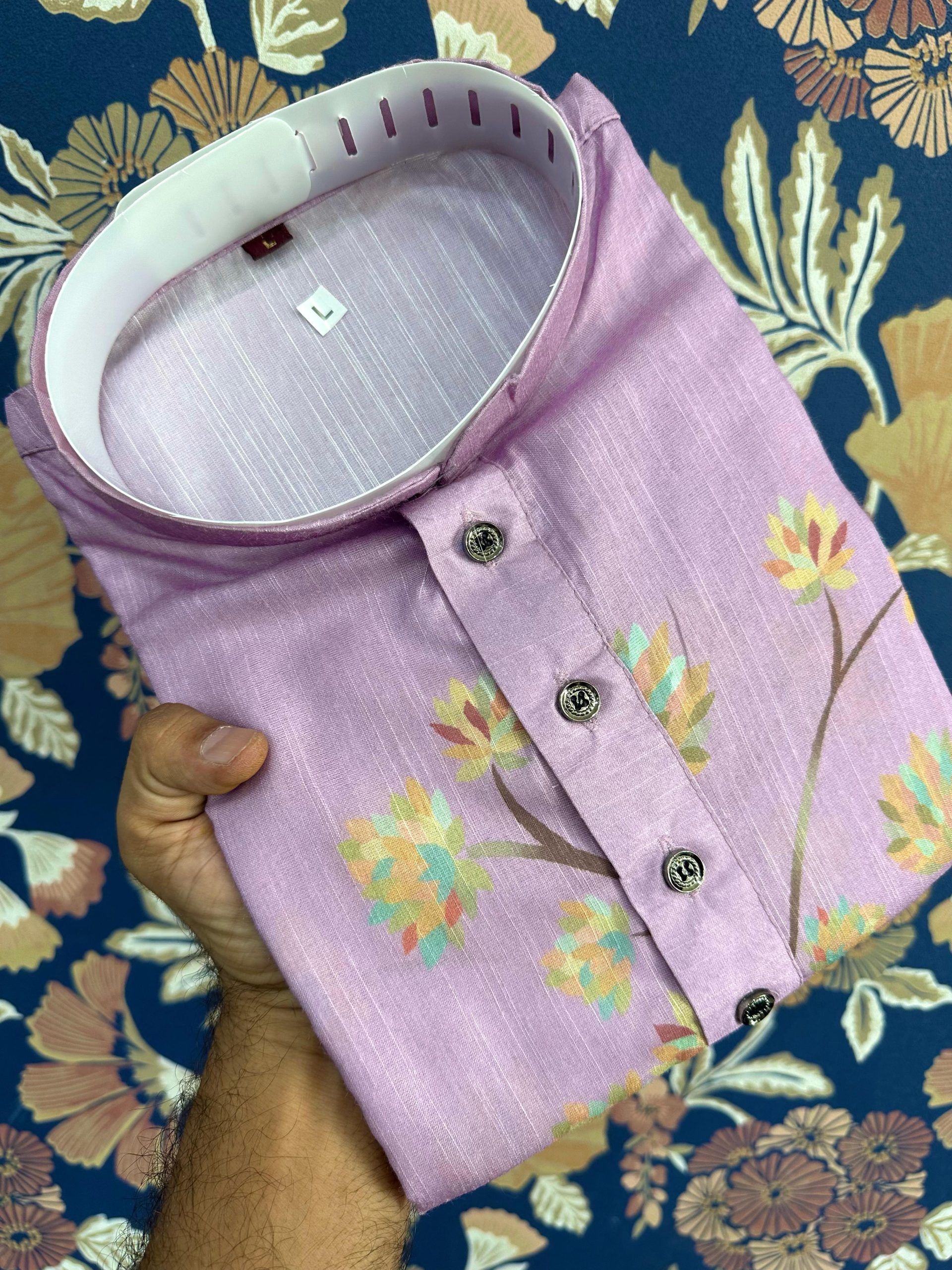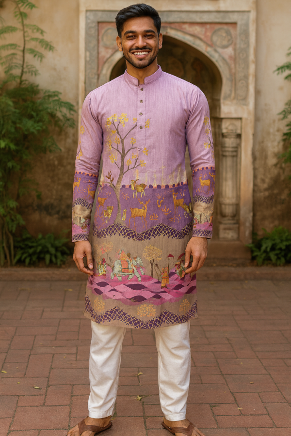 Cool and Comfy Embroidered Kurta Pajama for Men in Dust Storm Pink