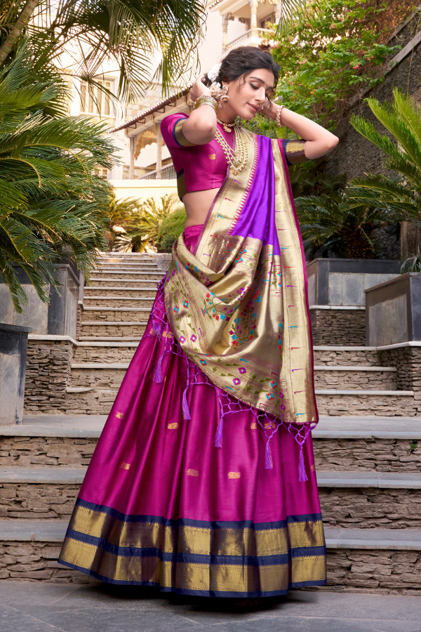 Regal Paithani Jacquard Silk Lehenga With Zari Weaving & Tassels