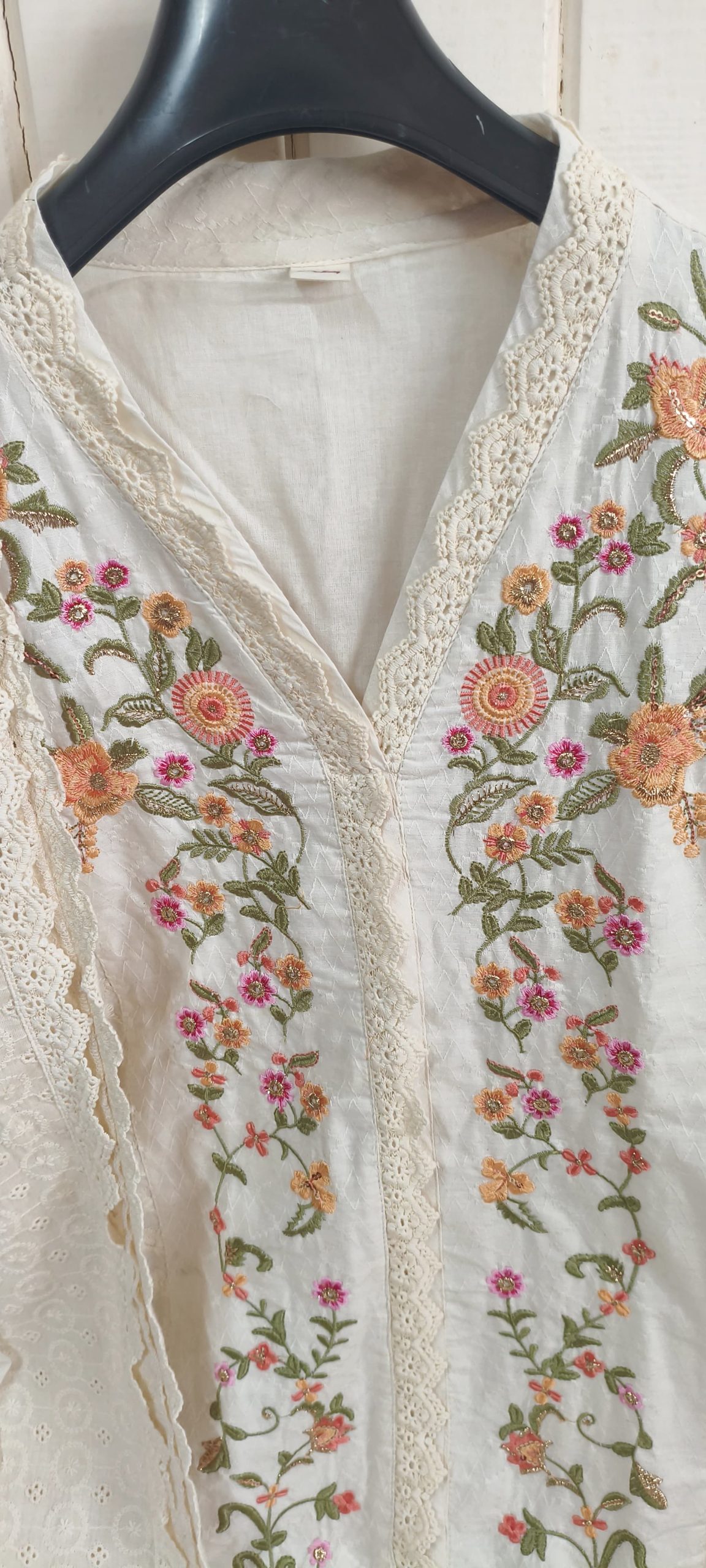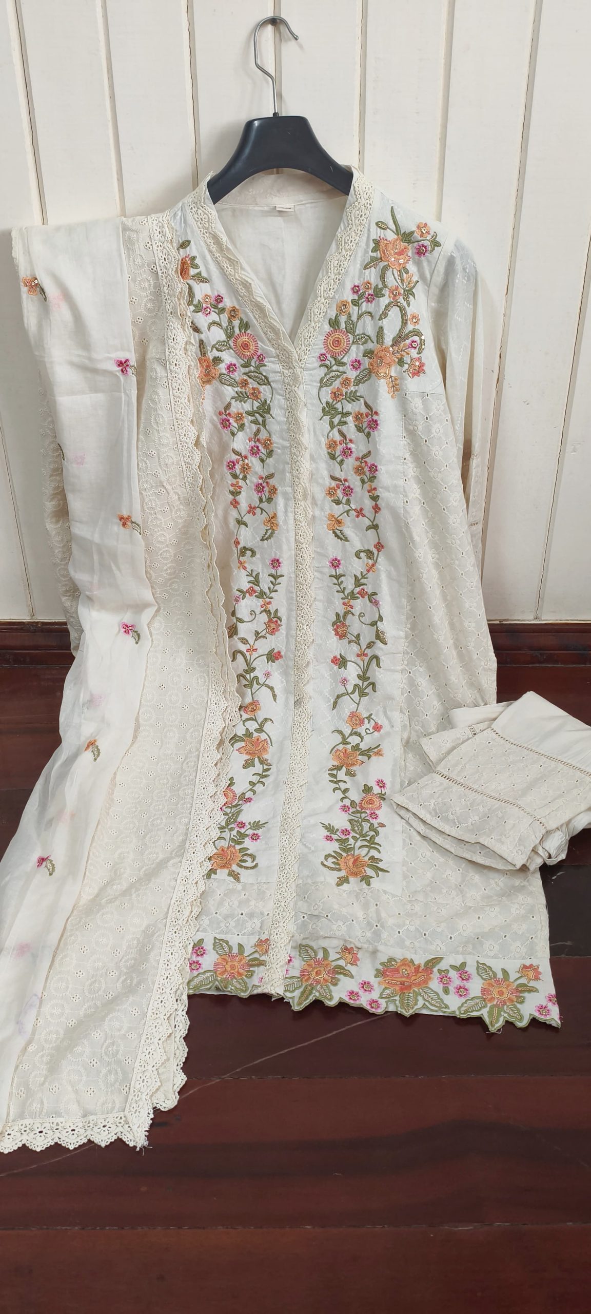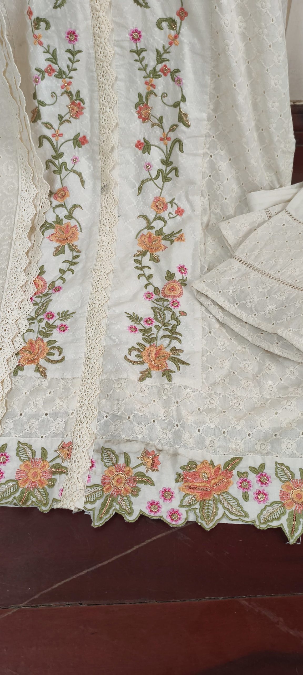 Embrace yourself with royalty with this off white masterpiece adorned with a rich and exquisite hand embroidery