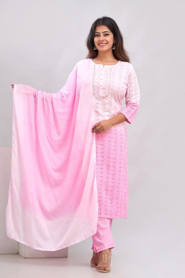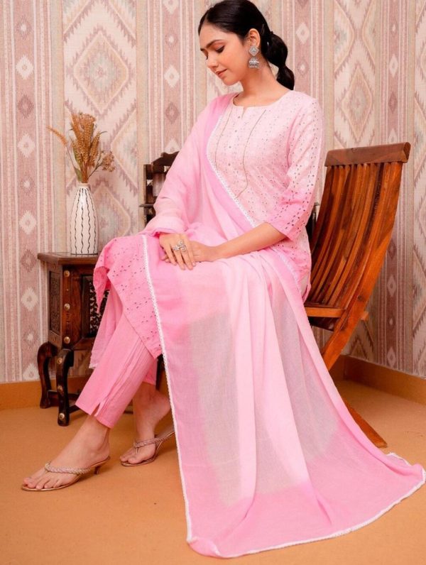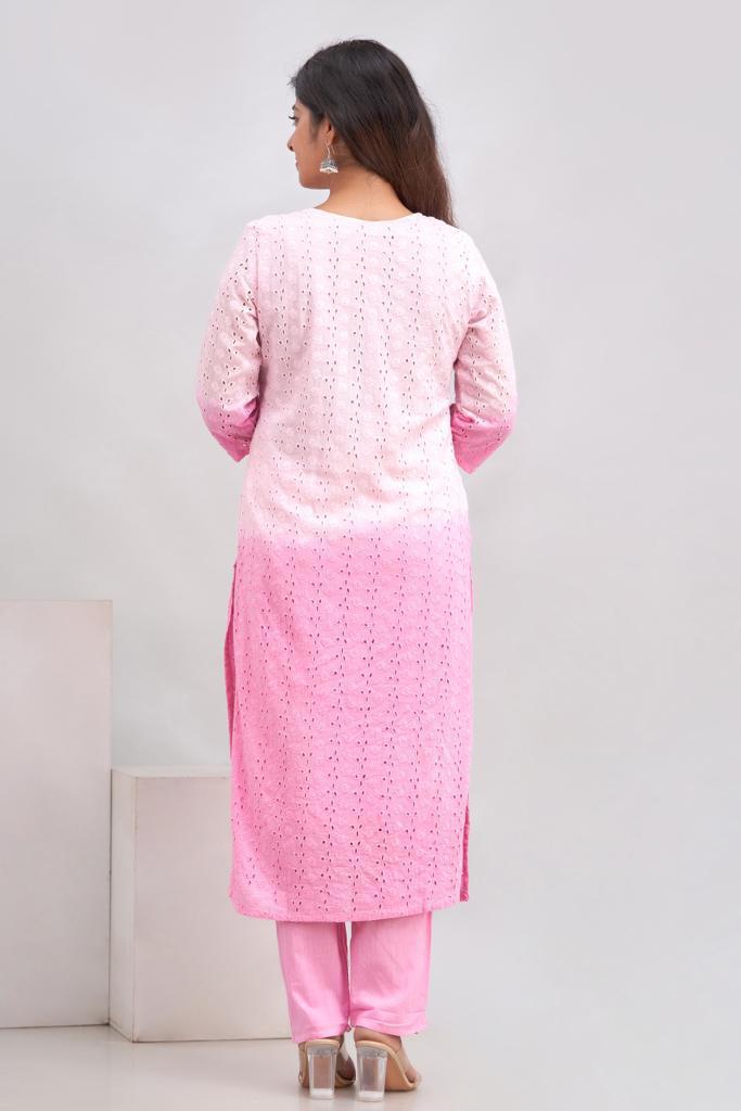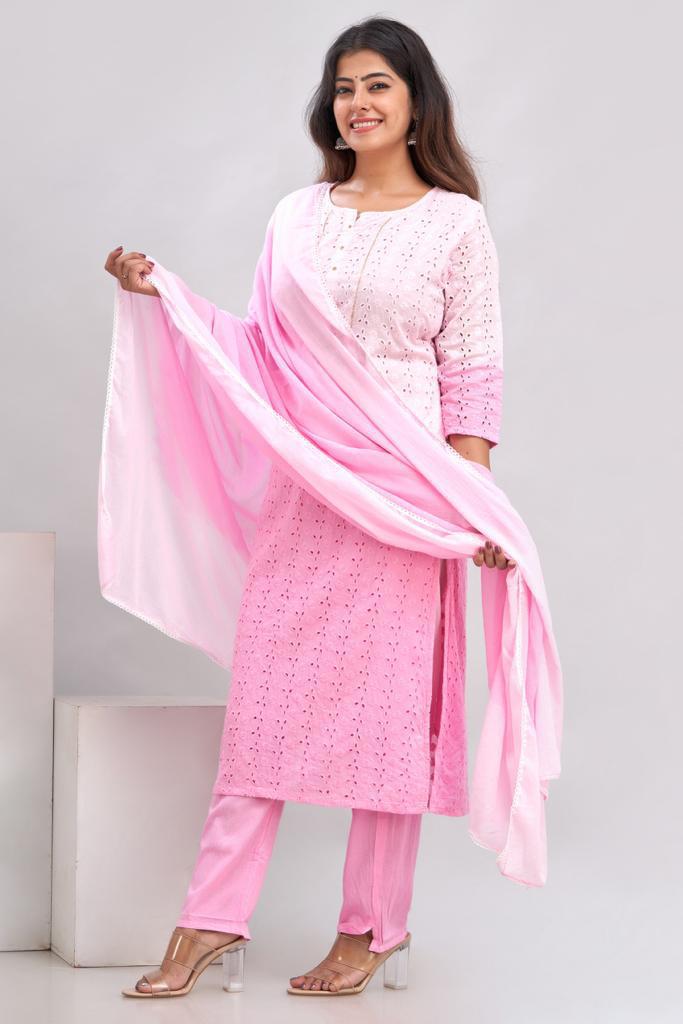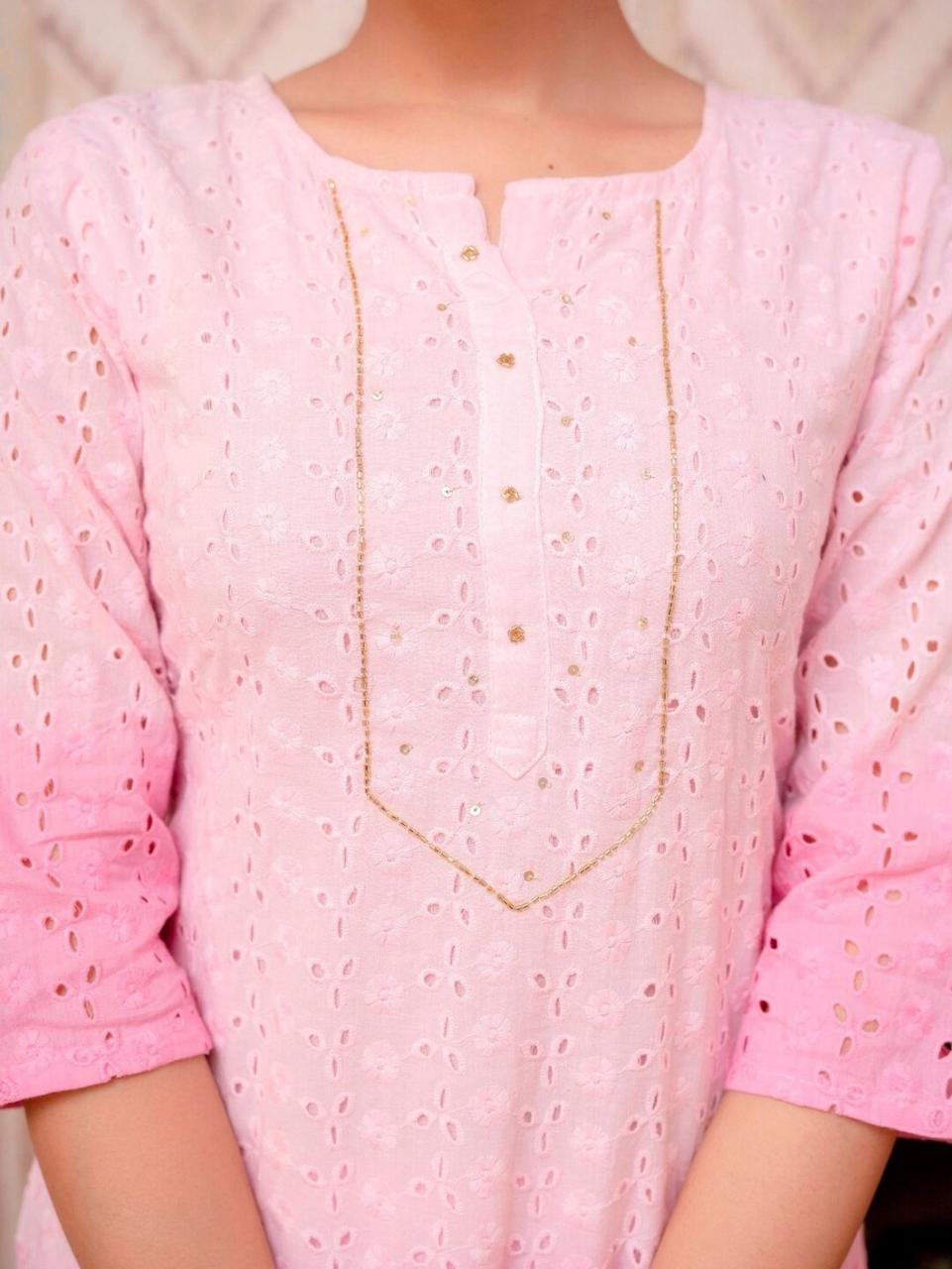 A soothing palette of pink in pure soft Cotton full of gorgeous hand embroidery