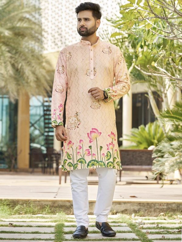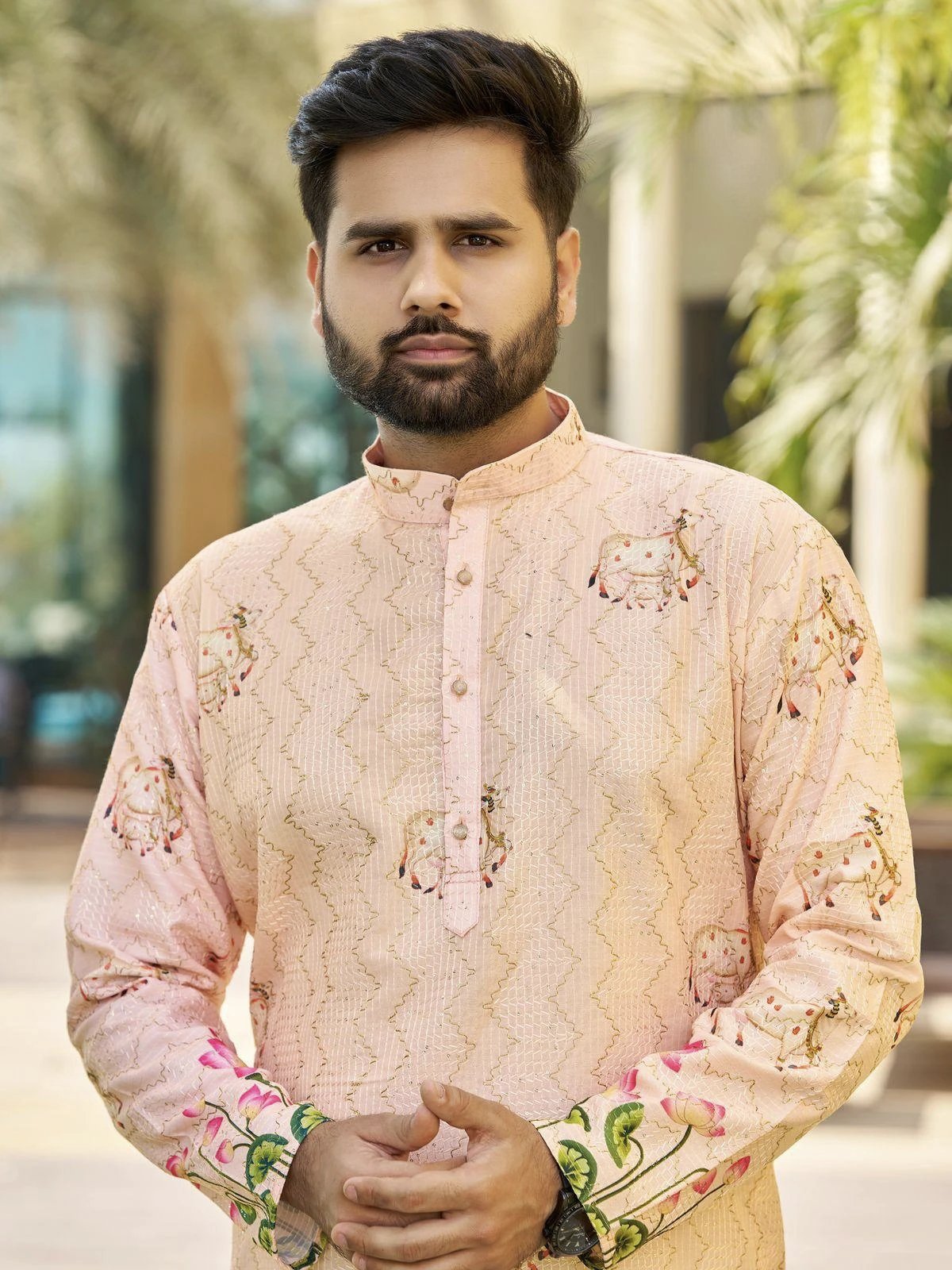 Cool and Comfy Embroidered Kurta Pajama for Men in Hampton Yellow