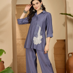 A comfortable cotton blend fabric made fabric attire,refined boutique-style finish. It showcases high-quality floral hand done patch and bead work on the front.