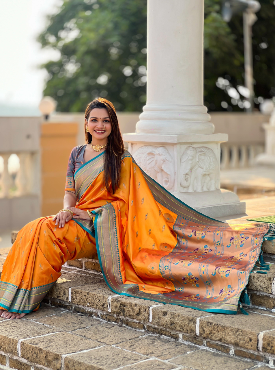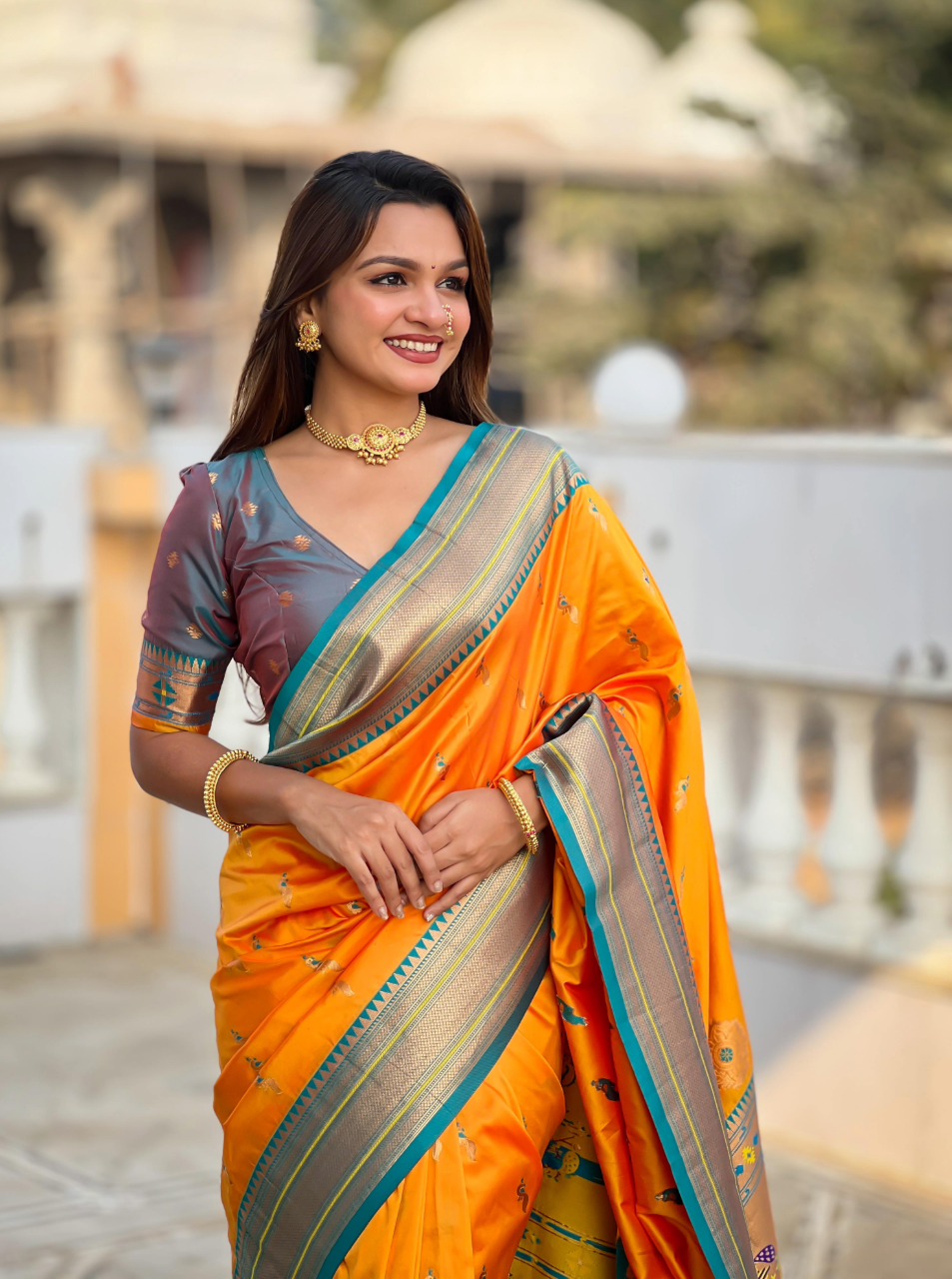 Simply luxurious pure Silk saree with unique colour and skin friendly fabric