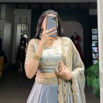 Skirt fully stitched, beautiful dupatta and plenty fabric for the top to be stitched!!Check out this traditional handcrafted piece in soft, flowy silk. Lace too provided with blouse fabric…