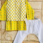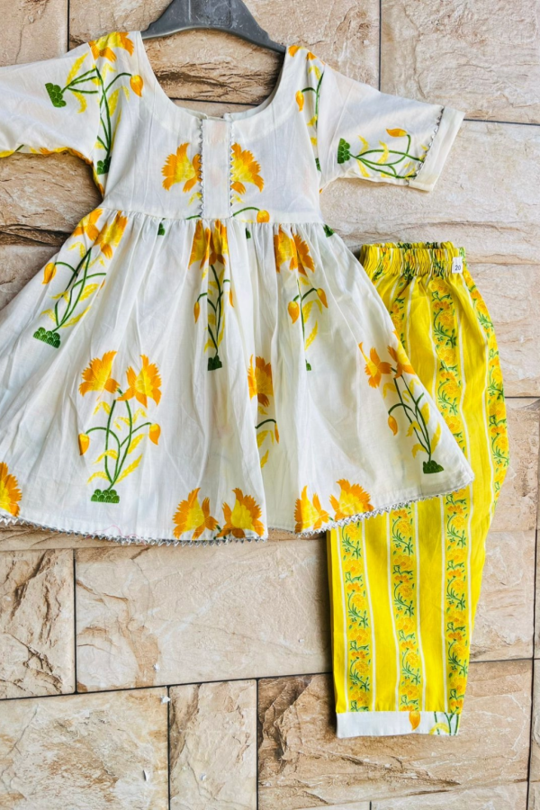 Pure Cotton Frock Kurta Set with Shawl in Sunset Yellow