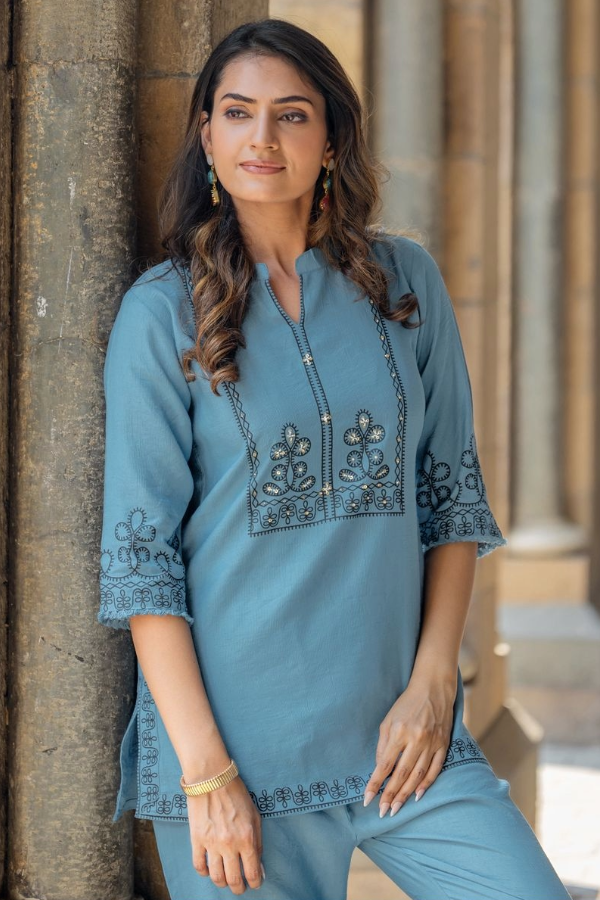 Textured Viscose Slub With Intricate Handwork Small Fit