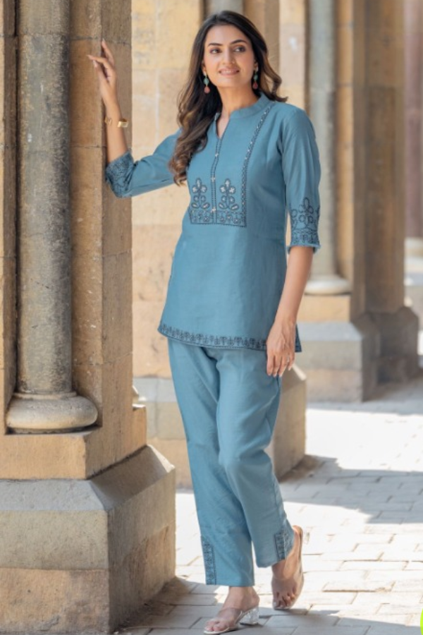 Elevate your wardrobe with our Viscose Slub Hand-Work Collection. This set is meticulously designed for a professional yet festive aesthetic, featuring a high-quality fabric that offers the structural look of linen with the fluid drape of viscose.