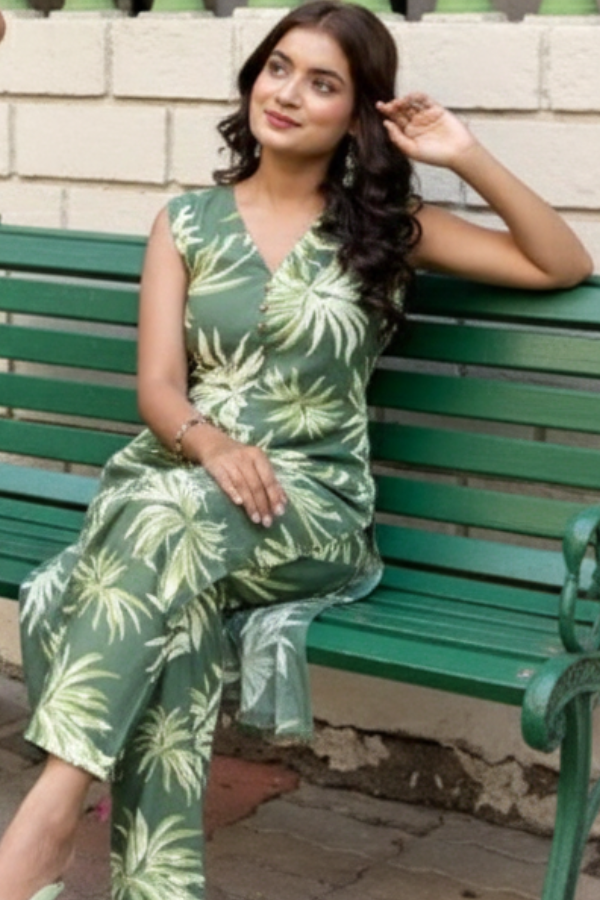 Olive Green Showstopper Palazzo Kurta ShawlFabric:Rayon Cotton