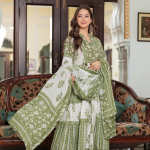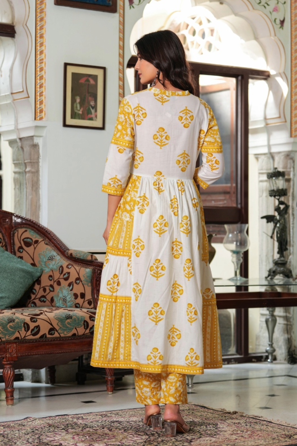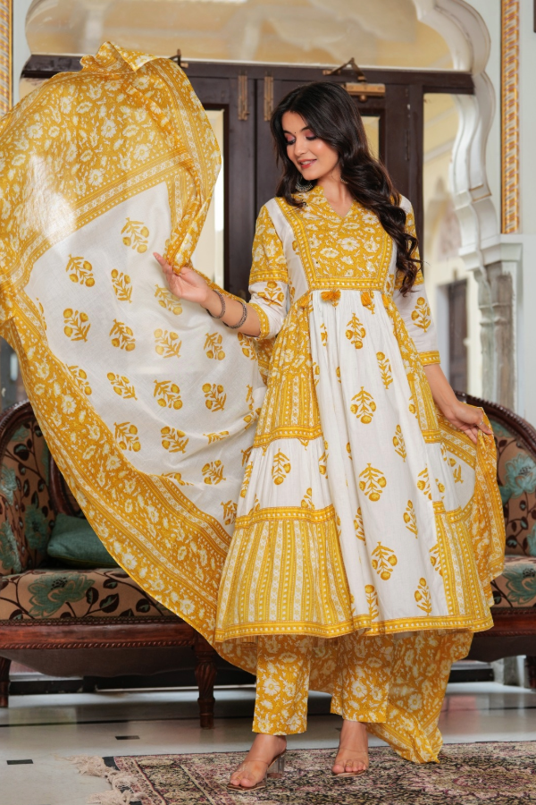 Full flare Anarkali in classy soft cotton, entirely adorned with elegant hand block printing.