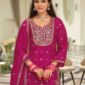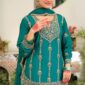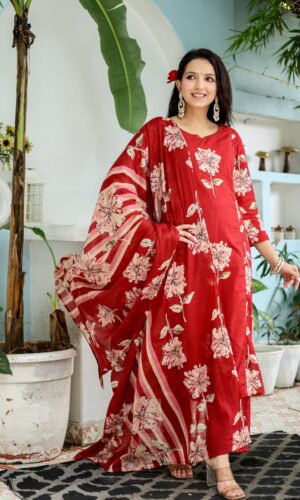 Crimson Floral Appliqué Ensemble In Pure Soft Cotton (Close Fit)